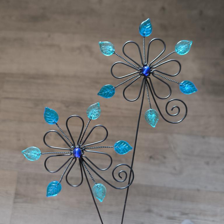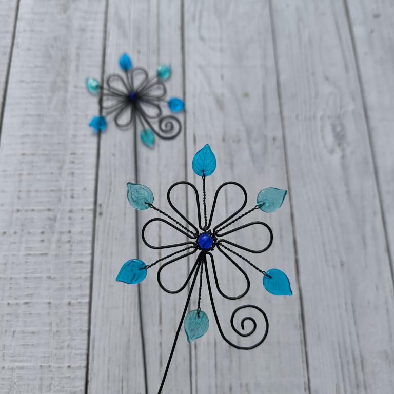 Zapichovátko z černého žíhaného drátu. Velikost květiny cca 11 x 11cm. Délka zápichu cca 25cm, měřeno bez květu.